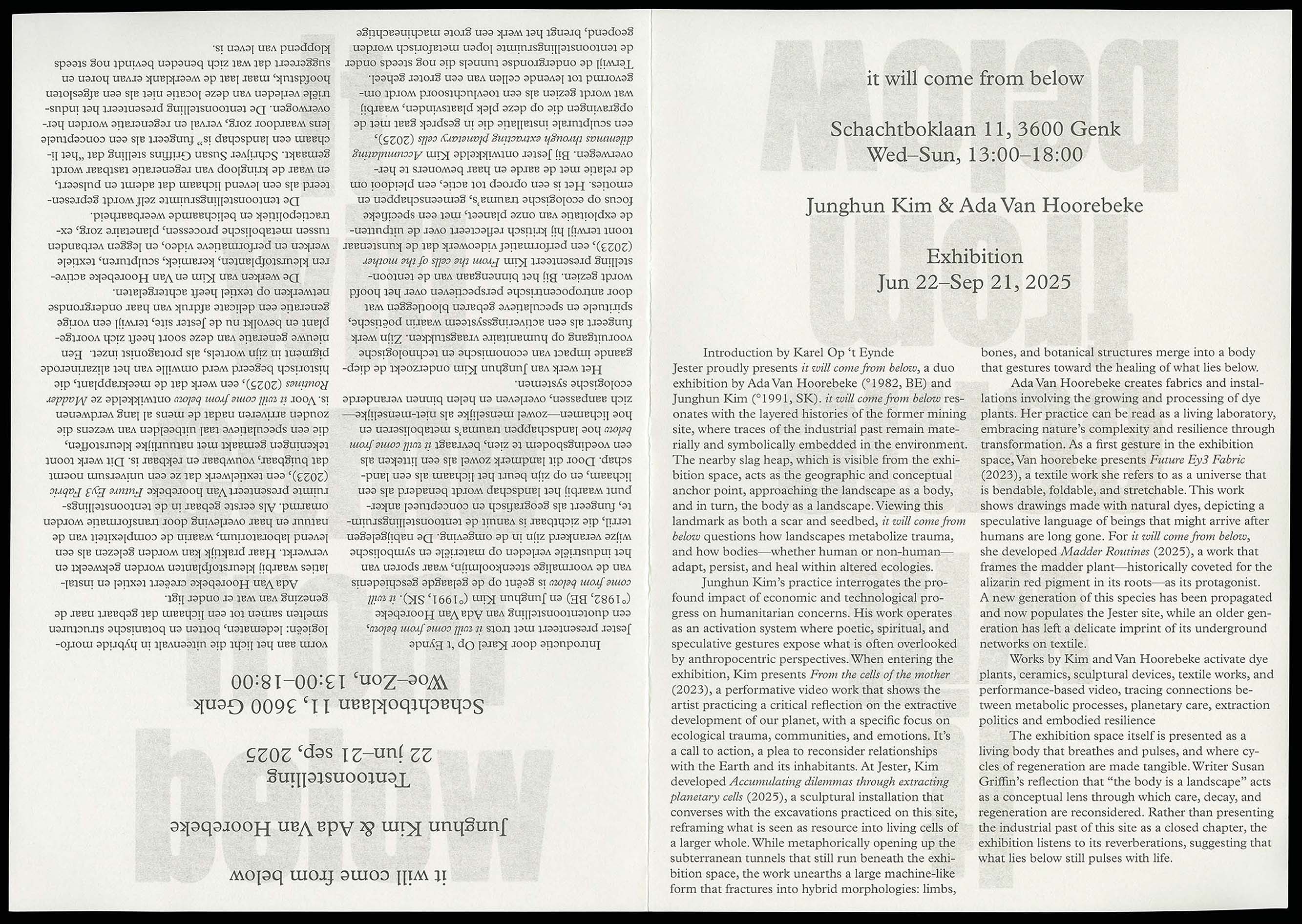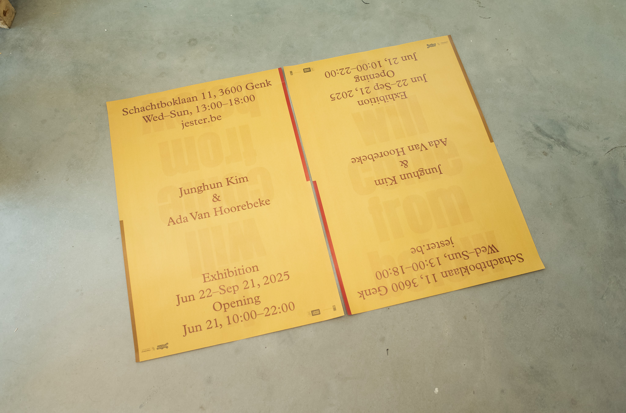 It Will Come From Below, exhibition graphic design for Junghun Kim & Ada van Hoorebeke, Jester, Genk (BE), 2025