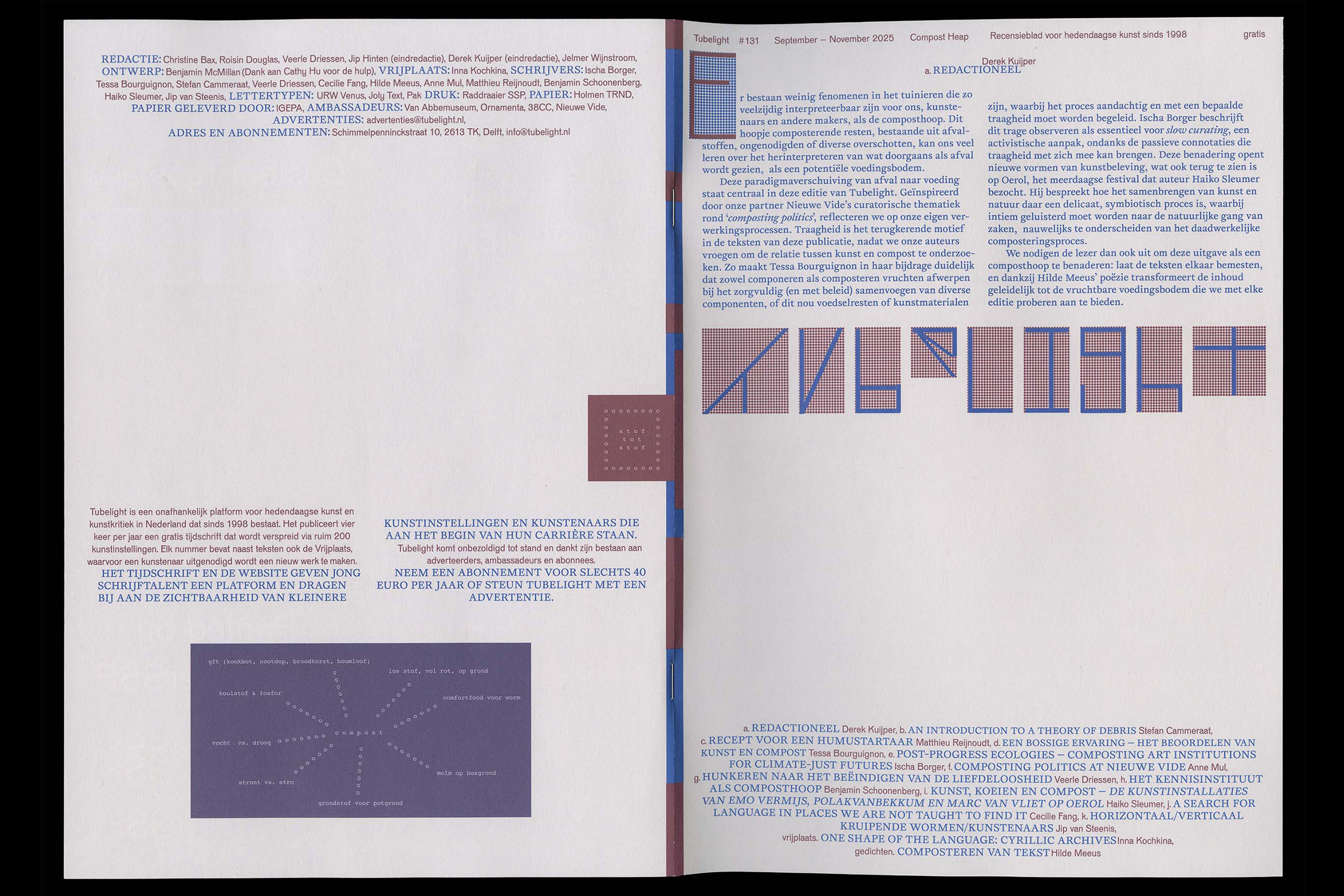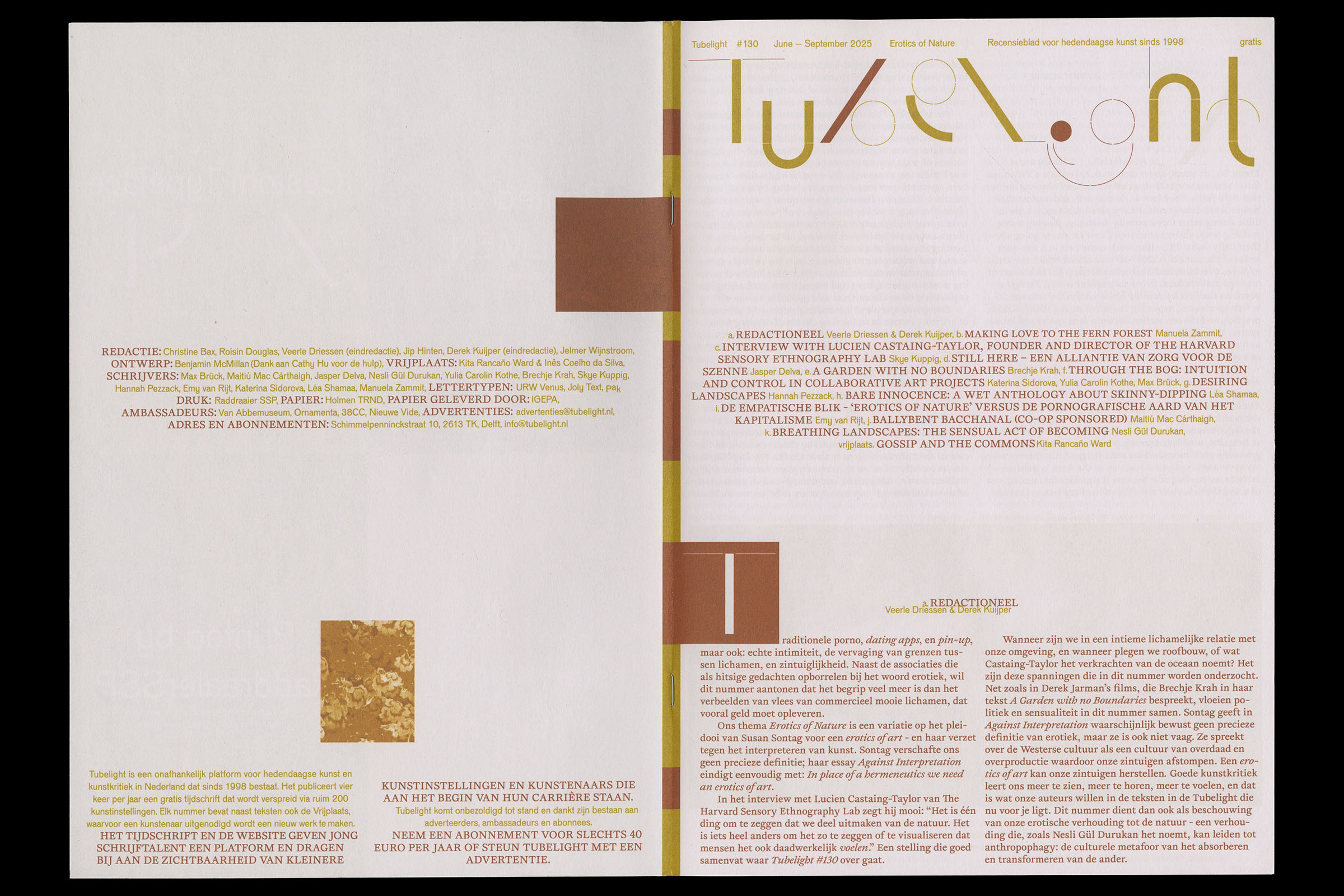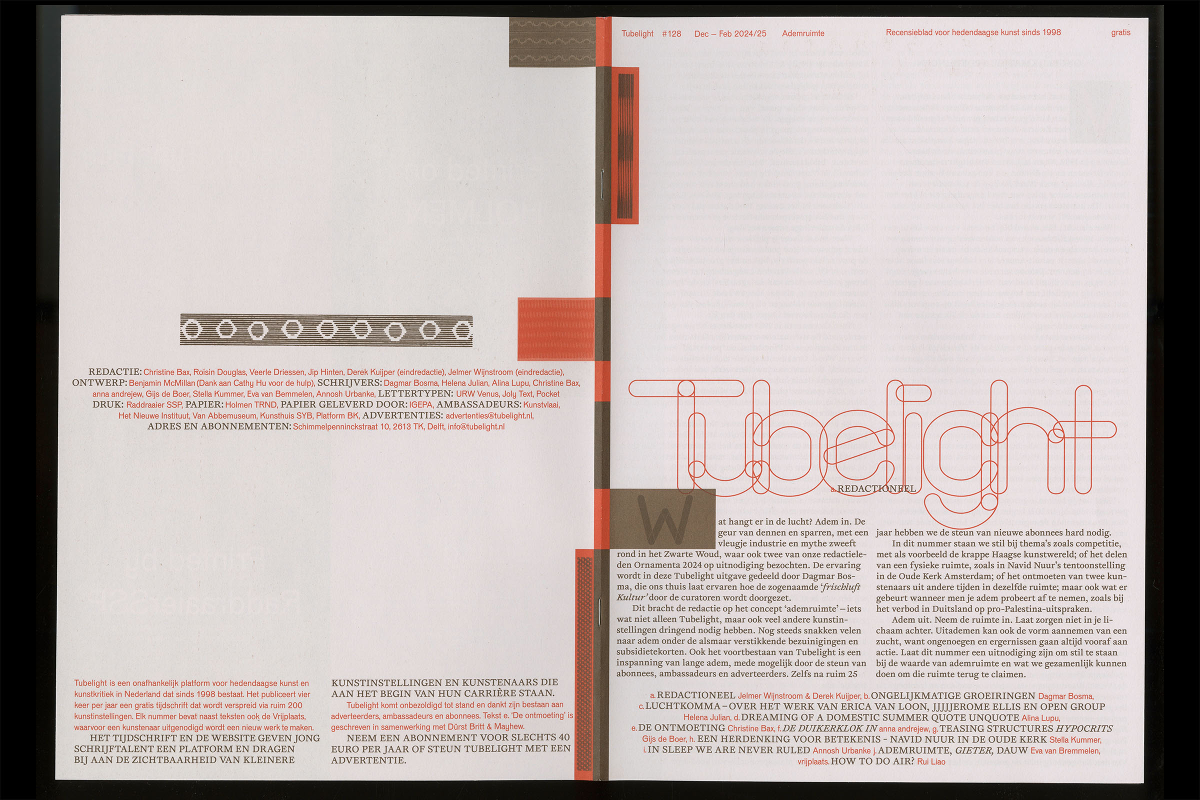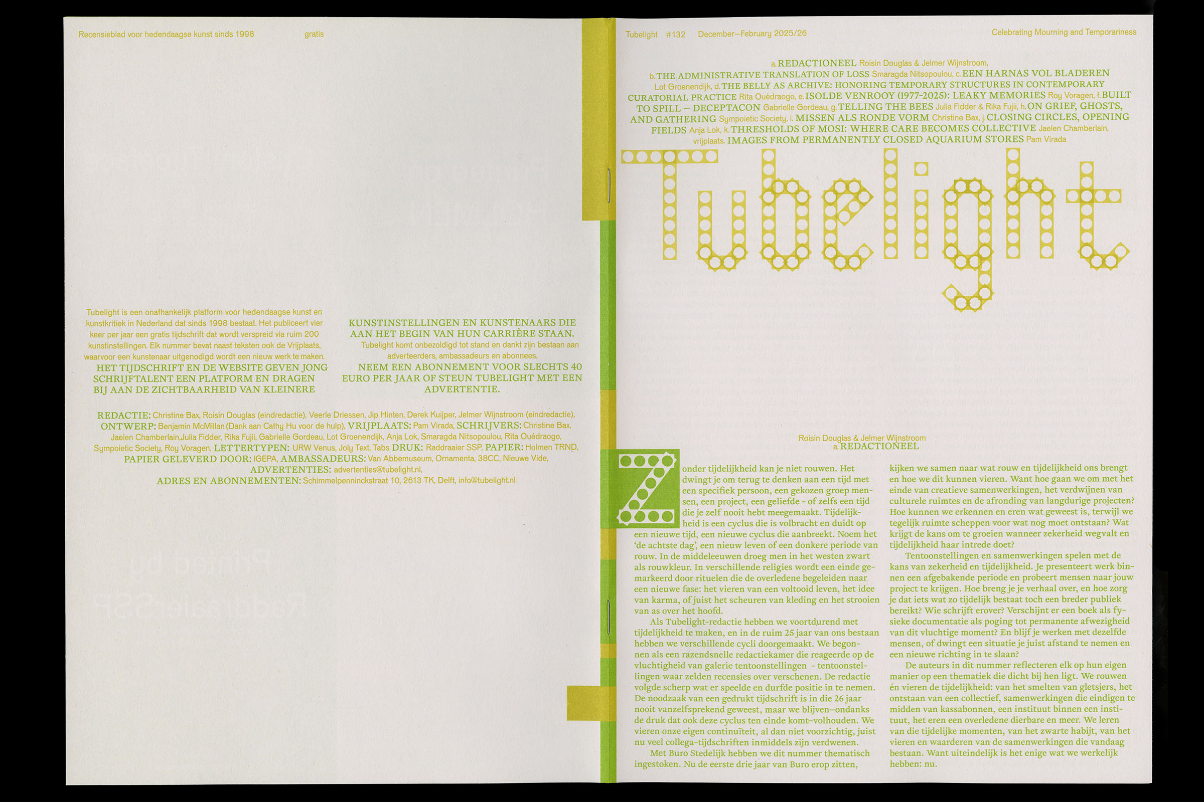 Tubelight 132, magazine designed with custom typeface Tabs, 2025
